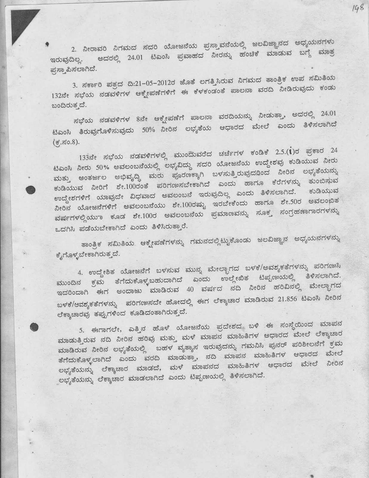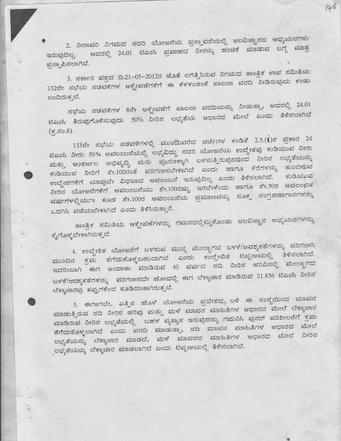 ಇತ್ತ ಜಲಸಂಪನ್ಮೂಲ ಇಲಾಖೆ ತನ್ನ ಕೆಲಸವನ್ನು ಮಾತ್ರ ನಿಲ್ಲಿಸುವುದಿಲ್ಲ. ಸರಕಾರವು ಆಡಳಿತಾತ್ಮಕ ಅನುಮೋದನೆ ನೀಡಿ ಆಗಿದ್ದರೂ, ತಾ. 27-07-2012ರಲ್ಲಿ ಮುಖ್ಯ ಎಂಜಿನಿಯರರು ಜಲವಿಜ್ಞಾನ ಘಟಕದ ಅಧೀಕ್ಷಕ ಎಂಜಿನಿಯರರ ವರದಿಯ ಲೋಪದೋಷಗಳನ್ನು ಎತ್ತಿತೋರಿಸಿ ಅವರಿಗೆ ನಾಲ್ಕು ಪುಟಗಳ ಪತ್ರ ಬರೆದು, (ಆಂತರಿಕ ಟಿಪ್ಪಣಿ) ವರದಿಯನ್ನು ಪರಿಷ್ಕರಿಸಿ ಹೊಸದಾಗಿ ಸಲ್ಲಿಸುವಂತೆ ಸೂಚಿಸುತ್ತಾರೆ. ಮುಖ್ಯ ಎಂಜಿನಿಯರರ ಈ ಆಂತರಿಕ ಟಿಪ್ಪಣಿಯ ಸಾರಾಂಶವನ್ನು ಮಾತ್ರ ಕೊಟ್ಟರೆ ನನಗೆ ತೃಪ್ತಿ ಇಲ್ಲ. ಹಾಗಾಗಿ ಮೂಲದಾಖಲೆಯ ಎಲ್ಲ ನಾಲ್ಕು ಪುಟಗಳನ್ನು ಮುಂದೆ ಕೊಟ್ಟಿದ್ದೇನೆ: